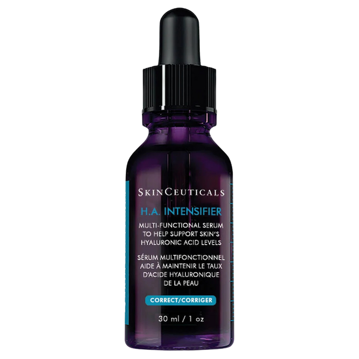 H.A. Intensifier is a multi-beneficial corrective skin serum proven to increase skin’s hyaluronic acid levels through its unique formulation. This formula contains multiple forms of hyaluronic acid, a high concentration of pure Proxylane™, and botanical extracts of licorice root and purple rice that effectively penetrate the skin to maintain and increase hyaluronic acid levels for long lasting hydration. This hyaluronic acid serum simultaneously improves the visible appearance of firmness, facial plumpness and smoothness.