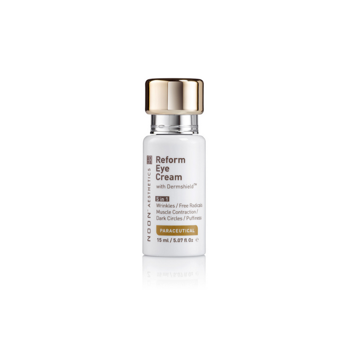 Reform Eye Cream – 5 treatments in 1 formula for complete periorbital rejuvenation. Reform Eye Cream contains a combination of various active ingredients that help to reduce the appearance of puffiness and darks circles under the eyes. It also fights free radicals around the eyes and helps to prevent thinning of the skin. Furthermore, it helps to reduce the appearance and depth of wrinkles around the eyes and also helps to reduce muscle contraction and soften expression lines. The added DermShield™️ complex protects the delicate skin from irritation and allows daily use with highly concentrated active ingredients.