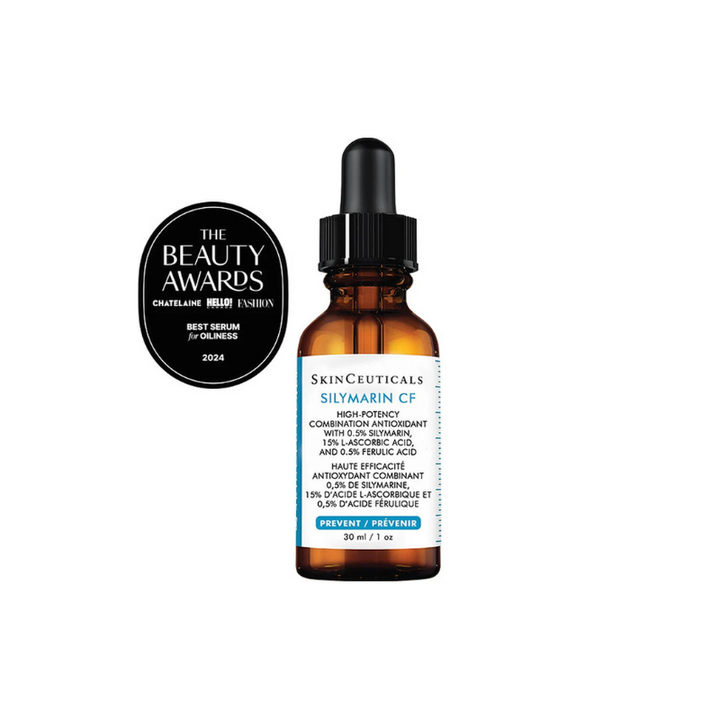 Silymarin CF is a breakthrough vitamin C serum for oily and acne-prone skin that combines 0.5% silymarin (milk thistle extract), 15% l-ascorbic acid, 0.5% ferulic acid, and 0.5% salicylic acid. This oil-free formula is clinically demonstrated to reduce oiliness, refine skin texture, and fine lines.